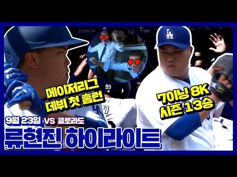 · [류현진 하이라이트] 다저스 시즌 100승, 류현진 13승, 메이저리그 ..