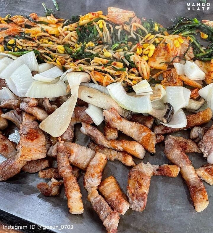 서오릉 여럿이 둘러앉을 수 있는 큼지막한 테이블에 구워내는 두툼한 삼겹살. 커다란 불판이 당구대 같다고 해 당구대 삼겹살로 불리는데요.