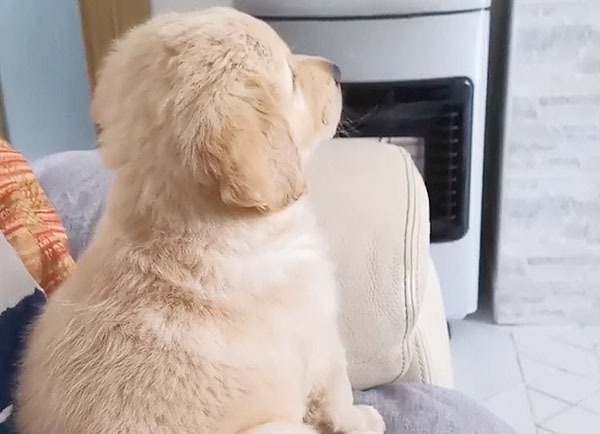 너무 재밌는지 눈을 떼지 못하는 댕댕이!