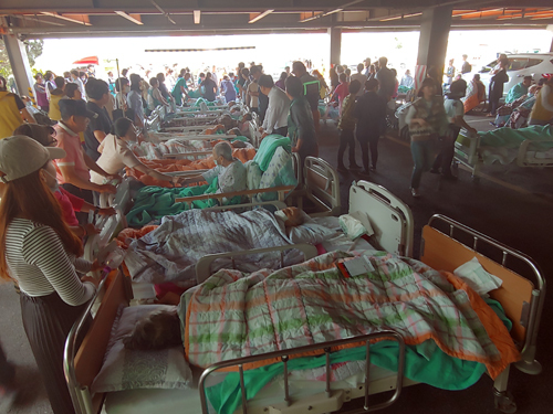 병원과 연결된 1층 주차장은 긴급대피한 환자들로 마치 전시 상황을 방불케 했다. 마스크를 쓴 환자들은 침대나 휠체어에서 담요를 덮은 채 다른 병원 이송을 기다렸다. 화마는 병실로 번지지는 않았지만 연기가 빠르게 퍼진 데다 전력까지 꺼져 병원 안은 암흑상태였다고 환자들은 화재 당시 상황을 전했다. 70대 중반의 전모씨는 “‘펑’하는 소리와 함께 닫힌 문 사이로 검은 연기가 들어와 현장은 그야말로 아비규환이었다“며 “일부는 수건을 이용해 어떻게든 버티려고 했는데 대피할 방법이 없어 공포에 떨어야 했다”고 말했다. 다른 환자는 “너무 무서웠다. 살려 달라고 소리를 지르는 방법밖에 없었다”고 긴박했던 상황을 설명했다. 간병인 박모(70)씨는 “일단 휴지를 뽑아 환자들의 입을 틀어막고 한 명씩 휠체어에 태웠다”고 말했다.