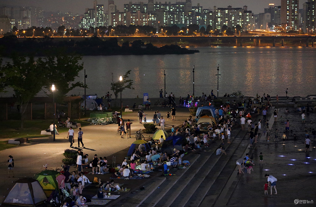 2013년 여름, 열대야에 지친 시민들이 강변에서 더위를 피하고 있다. <출처 : 연합뉴스>